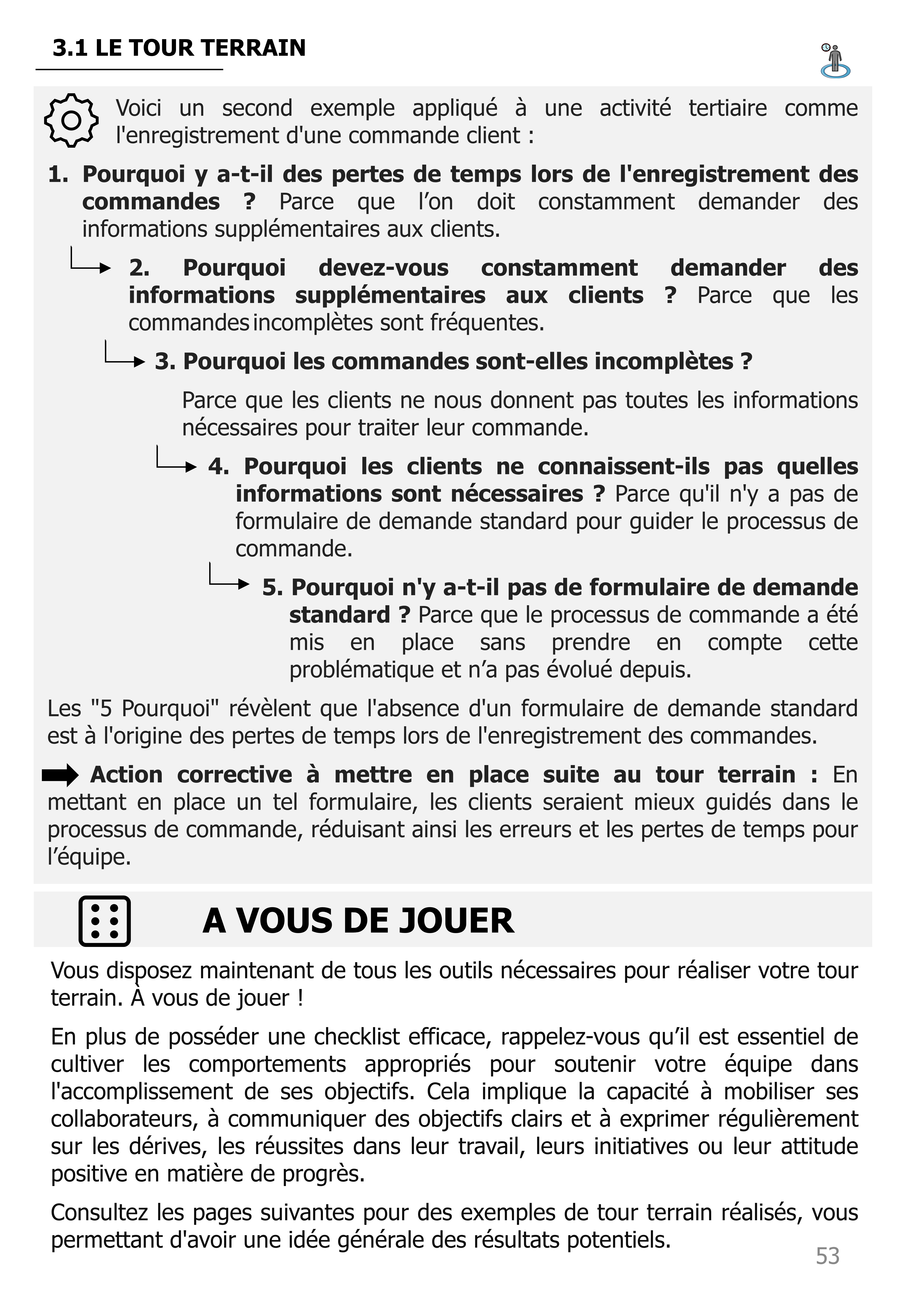 - Résoudre les problèmes sur le terrain : Encouragez vos équipes à identifier et résoudre les problèmes dès qu'ils surgissent.